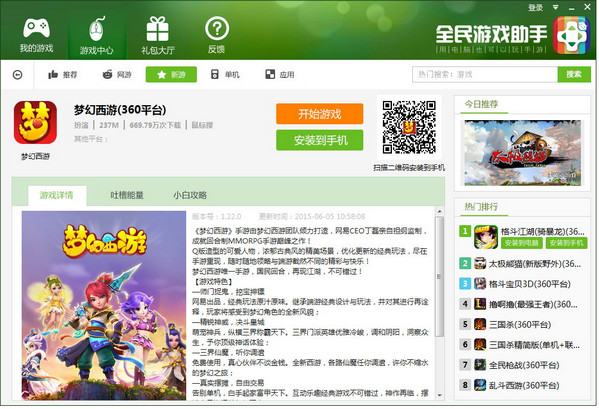 全民助手是新一代可以用电脑玩手游的安卓模拟器,具有游戏多开,全线普遍兼容,超低资源占用,极速安装运行,绿色辅 助脚本等特点,兼容目前所有windows平台,且可完美适配99%安卓游戏,并对市场上的火热游戏进行了深度优化,如部落冲突 ,梦幻西游,天天酷跑、火影忍者,穿越火线等,实现了超越手机运行的流畅度和画面效果,更有深度定制的辅助工具,玩游 戏更加省心!全民助手秉承三种核心体验(简称“三体”)宗旨,无闪退,无黑屏、无卡顿,坚持用户为中心的产品理念,是目前所有同类产品中功能最完善,体验最好的安卓模拟器!