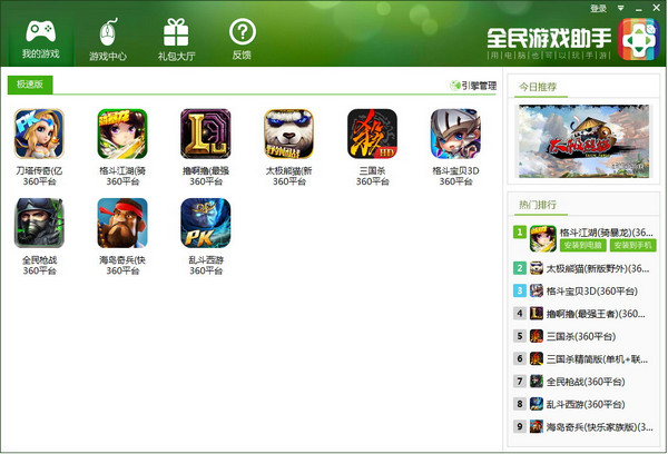 1.在《全民游戏助手》主界面中选择“我的游戏”标签,并点击“引擎管理”按钮。