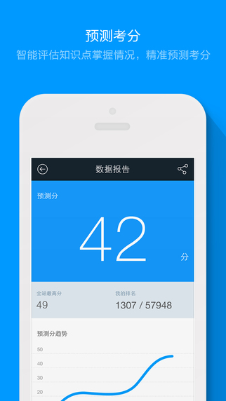 3. 智能评估精准预测:每次练习完即可对答案,系统根据你的历次练习记录智能评估你对每个知识点的掌握程度,引导你更有针对性地攻克弱项,并能精准预测考分。
