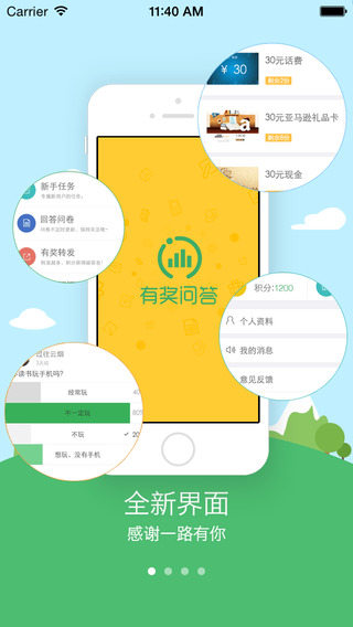 有奖问答ios版这是一款让你玩手机也能得到回报的软件,不过奖品是虚拟的,比如充值卡,礼品卡等,当然也有现金哦。闲暇时间坐下了赚赚钱也不错哦。