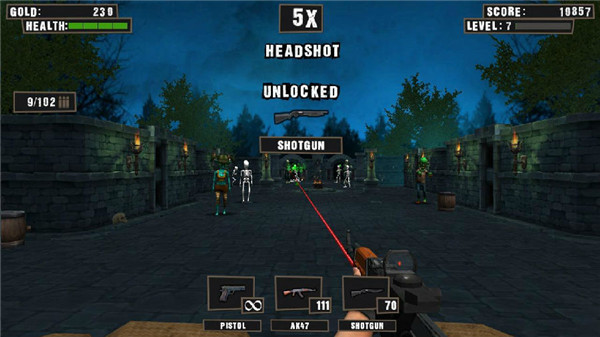 最基本的手枪的子弹是无限的,永远都是值得信赖的伙伴。