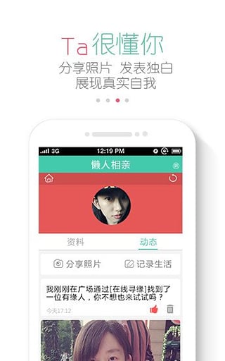 工作太忙没时间认识新朋友?生活太累没精力去谈恋爱?打开“懒人相亲”,开始一段都市“轻恋爱”!这里有最全最多的相亲对象,这里有最IN、最Cool的搭讪方式,单身进去,成对出去【软件特点】
