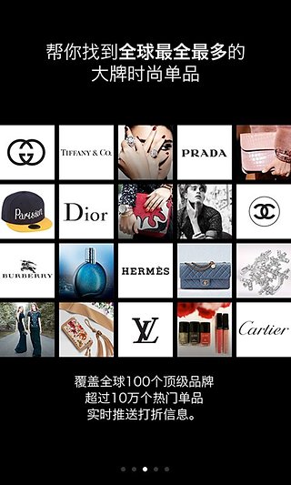 覆盖全球100个顶级品牌,超过10万个热门单品,实时推送打折信息。