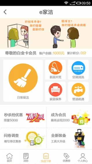 60秒快速下单,客户端、电话、微信、网站随时约,免费赠送家政保险