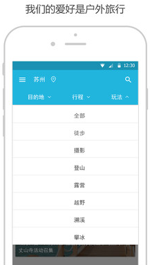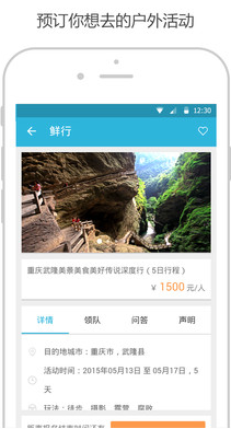1、查找活动查找各个城市最新的户外活动,快速报名参加好玩的户外出行。