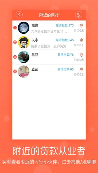 这是一款专注服务贷款从业者的移动社交app。在聚财村,贷款从业者可以: