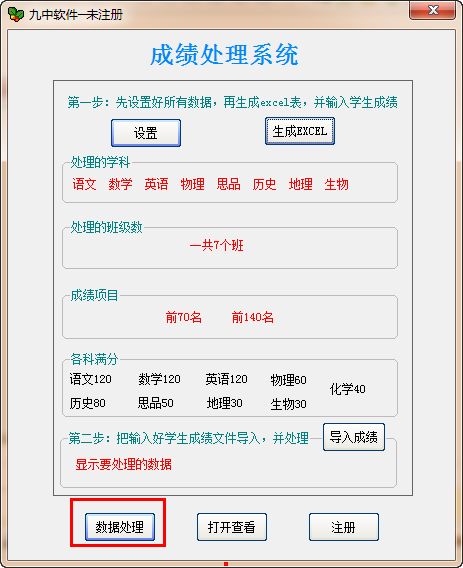 如果您是在教导处工作的老师,一定对每月的月考成绩处理非常的头痛!下面小编带来的是九中学生成绩处理系统,本软件对于学校每次考试,都要进行大量的数据计算,每个班低分率、及格率、高分率、综合指数、前多少名,名次等。有了学生成绩处理软件,对于学生成绩的处理就比较简单啦!【九中学生成绩处理系统使用方法】