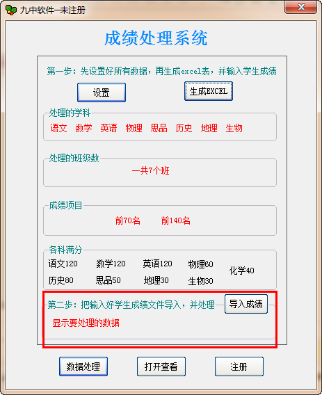 首先进行设置然后导入成绩