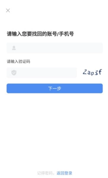 2、若用户忘记密码,可进行密码找回操作。在输入需要找回密码的账号/手机号以及验证码后,点击【下一步】。