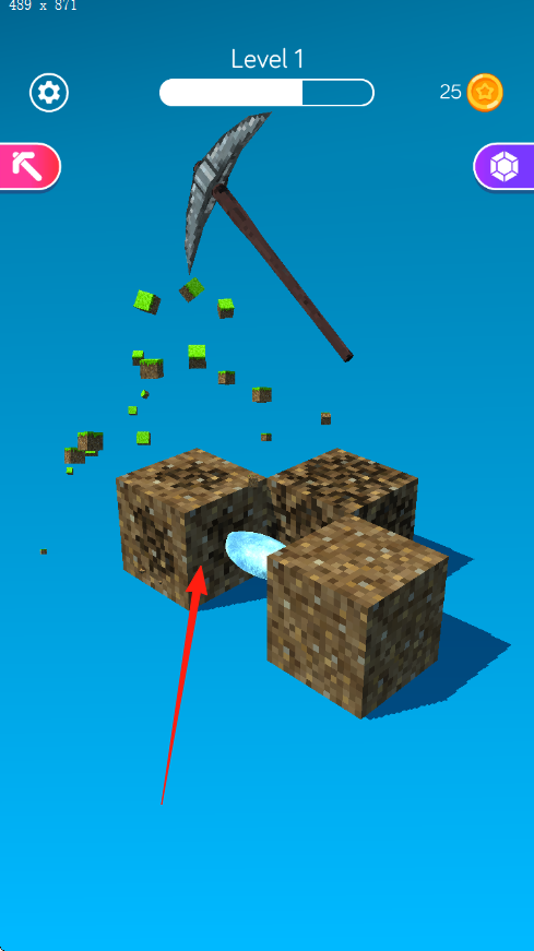 2. 在道具收集和挖掘的过程中,通过敲碎草块与土块来收集绿色碎片,同时探寻隐藏的蓝色矿石,以此来积累资源。
