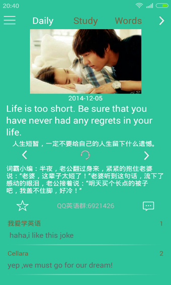 - 英语学习:每日推送制作精良、轻松趣味的听说读学习资料,实时同步最新英语资讯