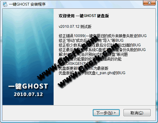 一键GHOST是"DOS之家"首创的4种版本(硬盘版/光盘版/优盘版/软盘版)同步发布的启动盘,适应各种用户需要,既可独立使用,又能相互配合.主要功能包括:一键备份C盘,一键恢复C盘,中文向导,GHOST,DOS工具箱