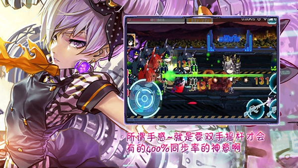 摇杆的灵活响应,极大的方便了玩家在操作上方向上的调整,配合武器射击键上的快速切换武器和连续打击的特点,使得玩家可以通过巧妙的走位和技巧操作。游戏中使用“节操”作为消耗品,每进一次副本就将消耗一定值的节操,这样的设定也让游戏平增了许多趣味。强烈的打击感和动作感让玩家在
