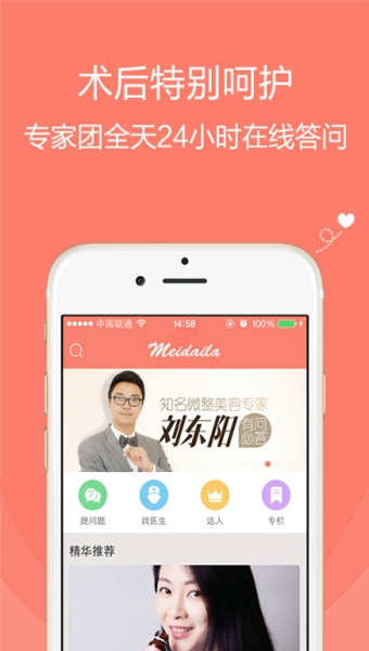 【独享术后特级护理】独家签约中国各地最好的医美专家,特别为术后烦恼期提供24小时在线问诊,细心呵护。