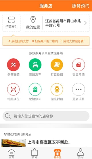 6、服务店:江浙沪两千多家线下服务店,网点丰富,热门服务店,手机智能推荐。