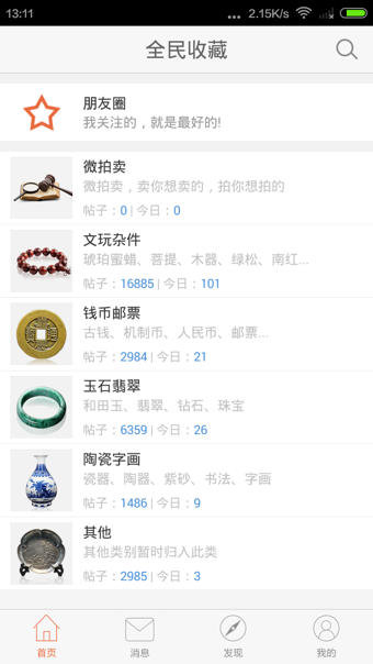 全民收藏致力打造广大藏友互动的社交平台。在这里,你可以成为专业的大师,也可以请大师帮你鉴宝,还可以不断的刷自己的存在感,找到一群志同道合的朋友。大藏家之路总是孤独且崎岖的,我们能做的仅仅是成为您的指南针!全民收藏包含内容广泛,涉及钱币、邮票、玉石翡翠、金银珠宝、陶瓷字画和文玩杂件等,用户通过平台可进行鉴宝、交易、交友等,方便收藏爱好者与广大藏友共同学习,共同进步。