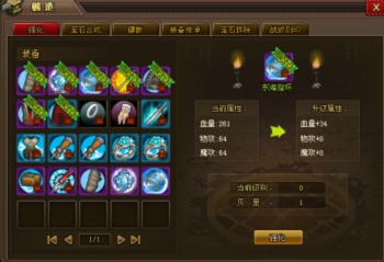 人物会升级,装备也可以强化升级(装备强化的等级不可以超过角色的等级),穿上装备之后,不要忘记对装备进行一定的强化,强化后可以提高一定的战斗力。同时在装备上镶嵌上高品质的宝石,又会进一步的提高角色的战斗力。