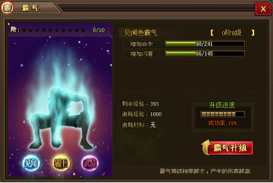 霸气不光拥有恐怖的伤害,升级、升阶后可以提高大量战斗力。霸气升级的时候,可以根据自己的需求选择性的升级。