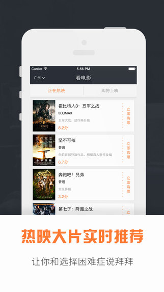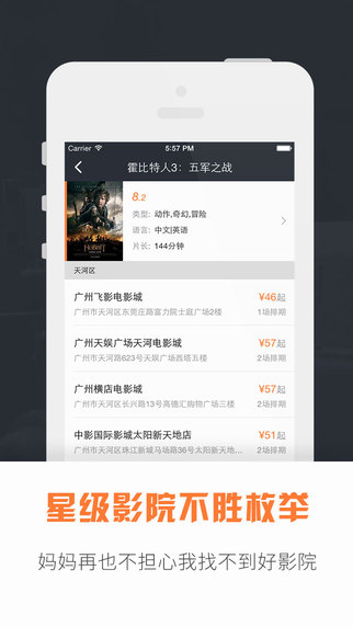- 全国影院实时影讯查询,随时随地获取影片第一放映时间及场次;- 手机购票,在线支付,操作简便快捷,轻轻松松提前选座购票,果断告别排队,省事省力省时省心,百分百提高你的观影体验;
