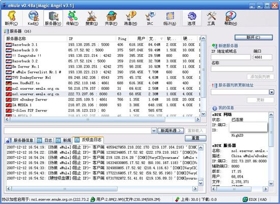 本汉化版基于作者在 eMule 官方论坛发给我的新版制作而成,虽然版本显示是v3.1 但实质上是 v3.2b7 版,修改了 v3.1 中的部分 Bug。虽然说是 beta 版但运行起来很稳定,我使用几个月尚未出现过崩溃的情况。