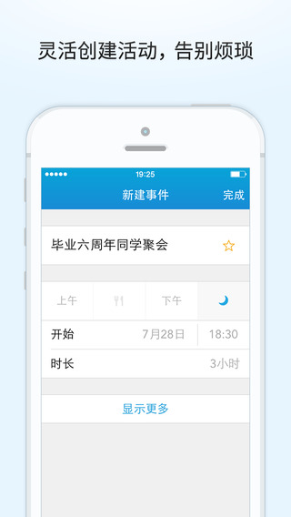 『灵活安排活动计划』通过上午/中午/下午/晚上的时段快速添加事件,告别烦琐的创建步骤