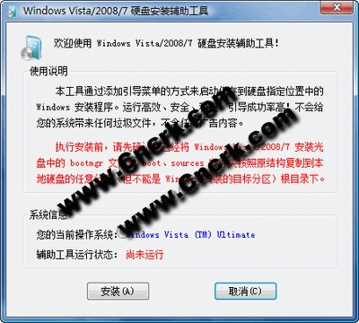 Windows7 硬盘安装辅助工具 简体中文绿色免费版 本工具通过添加引导菜单的方式来启动保存到硬盘指定位置中的安装程序。运行高效、安全、稳定,引导成功率高!不会给您的系统带来任何垃圾文件,不含任何广告内容。
