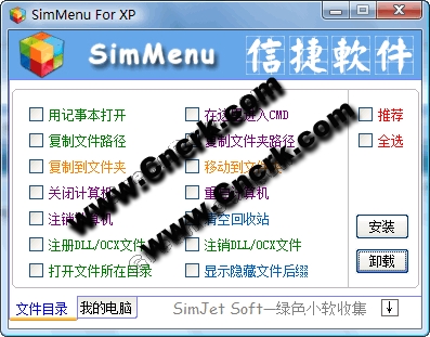 清空回收站、注册DLL/OCX文件、注销DLL/OCX文件、打开文件所在目录、显示隐藏文件后缀
