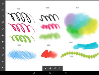 搭载有「画笔・喷枪・铅笔・水彩」等丰富的笔刷。