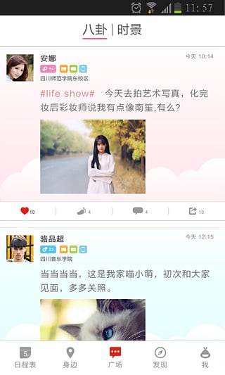 【群聚达人】自习、吃饭、K歌、打球、逛街、校园Party,一个一个约人太麻烦,校园达人日程表自动邀约功能,不再享受一个人的孤单,做个群聚达人,享受一群人的狂欢。