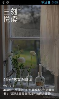 “三刻悦读”致力于更好的移动阅读,汇聚您个性化的定制内容,供您每天有限的时间内浏览,就像随身携带一本45分钟的杂志。系统要求:Android 2.3及以上系统。