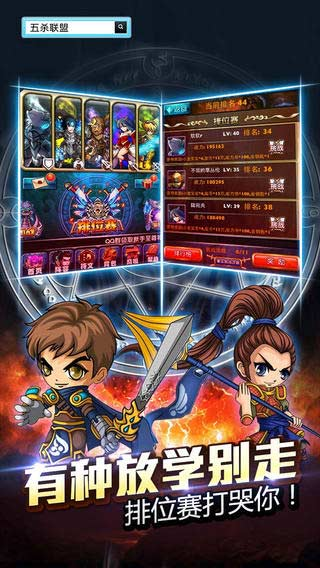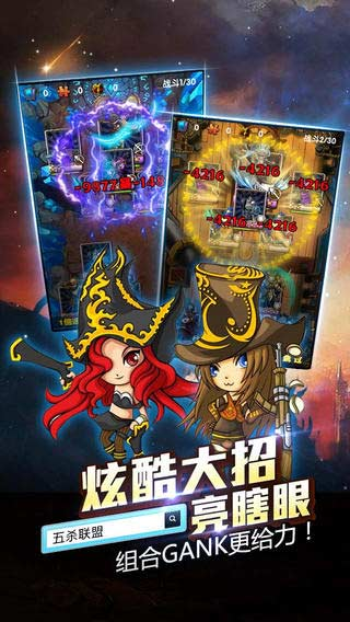 《五杀联盟》是一款角色扮演类手机游戏,撸一发而动全身,击杀大龙易超神。肉穿棉袄奶穿纱,装备超强易五杀。炫酷大招亮瞎眼,组合GANK更给力!五杀联盟,超爽五杀,LOLer必撸手游!五杀联盟安卓版高度还原后的场景,带着你的英雄们开始闯关吧,畅快体验游戏的刺激,搭配最好的战将,尽情激烈的五连杀,炫酷技能释放,想要逆袭就是这么简单。了解各自英雄的属性,在适合的机会下进行攻击,一触即发,剿灭敌人不再是难事。不断制造惊喜,在游戏中灵活的运动起来吧。