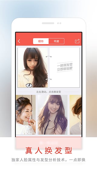 (2)真人换发型,独家脸型和光照分析技术,一点即换