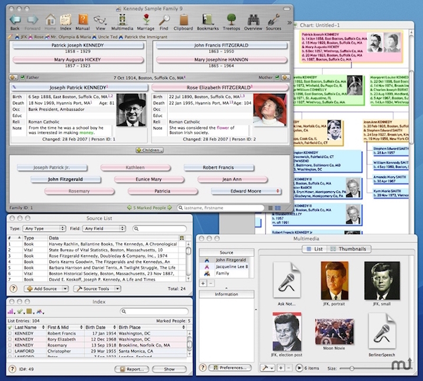Reunion for mac能记录存储和展示各种家族信息,包括血缘的前源后溯,每个人的生卒简历,照片音频视频,Reunion for mac可以建立各种图表、报告,可以精确计算出人物关系、年龄期望等等统计结论。甚至可以生成家族时间线大事记录等幻灯片,家庭报告等等。【Reunion软件特色】