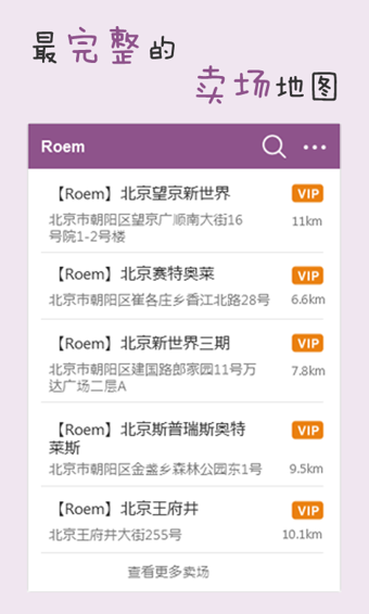 它可以帮你找到所有衣恋旗下品牌的卖场,并可以随时查看商品信息。