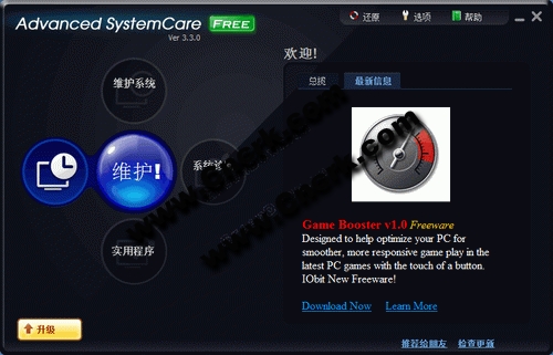想知道制约你的系统性能提示的瓶颈在哪里吗?想针对这些问题进行优化吗?试试Advanced WindowsCare吧。它通过对系统全方位的诊断,找到系统性能的瓶颈所在,并将测试结果显示出来。我们只需要选择“Repaire”命令,然后单击“Go”按钮即可启动软件的智能修复功能
