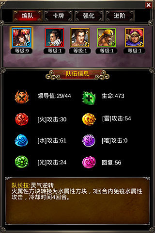 《邪将三国》是一款以热门三国题材背景,休闲益智型卡牌养成游戏。主演是用简单的宝石搭起你战斗的梦想,虽然简单却是需要动脑的,要将自己的手指练得比较灵活,要将自己的眼睛练得比较精明,能快速找出匹配的那些同颜色与形状的宝石,最好能一次消除多种的,这样才能保证你的战斗力是充足的,才能让那些不会动的卡牌释放出最厉害的技能。邪将三国将会给你不小的惊喜,那就是它不属于动作类的,而是大家都容易接受的休闲类,你能想象三国中的那些大将处于搞笑的状态吗,当他们拥有着无与伦比的高强的技能,却不能自由发挥,只能根据你消除宝石的能力来出战,最然他们不会对你抱怨,但也请你加快速度吧。