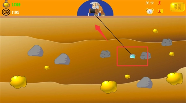 2、当钩子触碰到黄金、钻石这类物品时,马上松开,就能成功抓取。各类矿物对应不同的分数,优先挑选价值更高的目标,能够更迅速地通关。