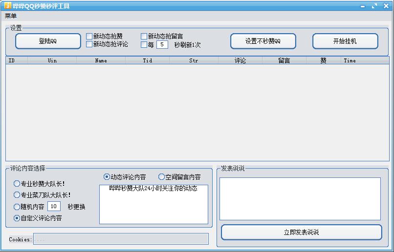 哔哔QQ秒赞秒评工具 3.0 免费绿色版 qq秒赞秒评论软件是一款免费小巧的QQ空间秒赞秒评论的便捷工具。该工具可以采用网页互联登陆方式,轻松登陆QQ空间,进行好友动态一键秒赞秒评论!