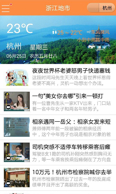 以浙江卫视、浙江之声龙头新闻栏目《浙江新闻联播》和《浙广早新闻》为主体,整合浙江广电集团各频道重点新闻资讯。随手随时了解浙江发生的各类新闻事件。