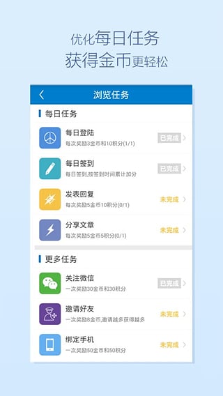 1. 新增任务中心,军衔系统,每天签到做任务,开心浏览,开心升级。