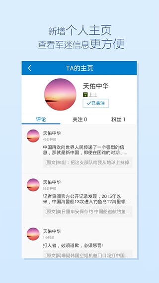2. 新增精彩评论,新增文章分享足迹,增加军迷互动。