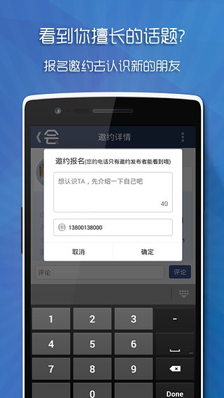 1、创建邀约时可以预留联系电话了,再也不怕互相找不到人啦。2、修复了在一些极端情况下通过引导页跳转到邀约时应用崩溃的问题。