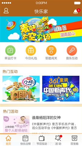 快乐家app for iphone版是金鹰卡通卫视和上海海唯动漫科技有限公司联合出品的亲子应用平台。打造安全、健康的移动互联网亲子生活入口,通过寓教于乐的互动方式全面提高孩子的情商、智商,培养良好的生活习惯。【软件特点】