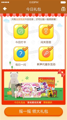 (3)今日礼包:每天摇一摇获得各种好礼;