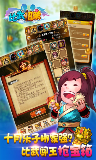 比武招亲360版有着顶级配乐,唯美画面,绝美卡牌,上传照片,社区交友,抢亲闯关,喝酒比武,快意恩仇,这是一个武侠世界,又不仅仅是武侠世界!相信每个人心中都有一个武侠梦,那《比武招亲》将让你的2014刻骨铭心!