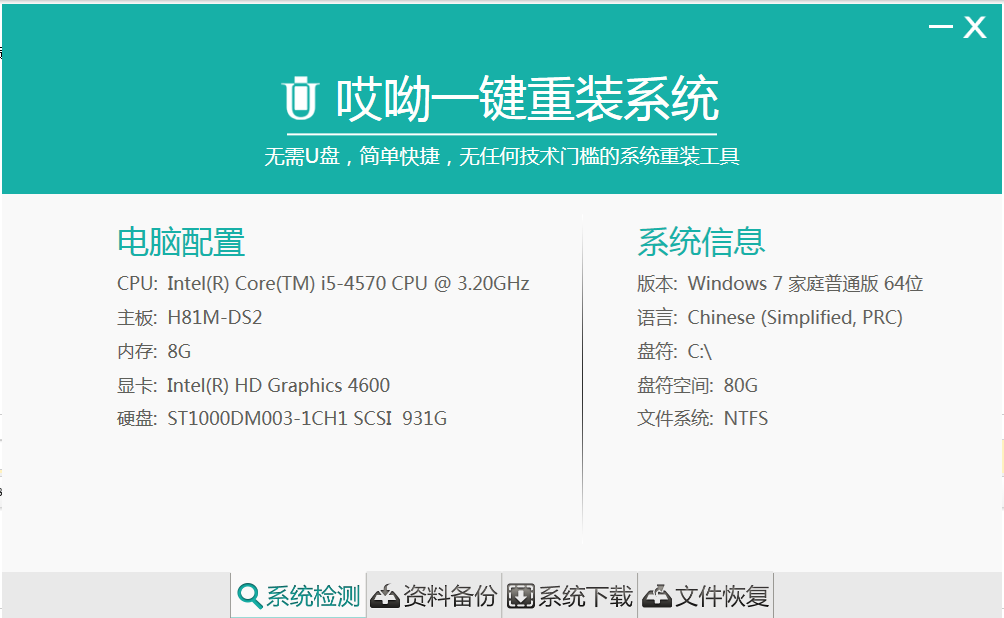 哎呦一键重装系统是一款简单好用的系统重装工具,它不仅可以帮你智能重装系统,还能自动帮你解决一些常见的系统问题,同时它界面友好,简单直白,不需任何技术背景和门槛,让所有用户都简单学会系统重装。【哎呦一键重装系统软件功能】