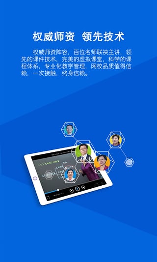 1、权威师资,领先技术权威师资阵容,百位名师联袂主讲,领先的课件技术,完美的虚拟课堂,科学的课程体系,专业化教学管理,网校品质值得信赖,一次接触,终身信赖。