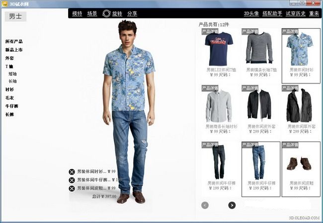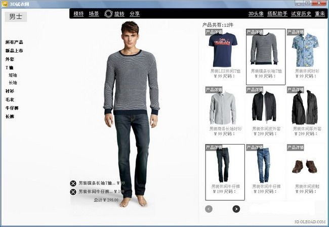 用户网上买的衣服,等拿到货时才发现不适合,这是让用户头疼的事了。3D试衣间是一款网上试衣服软件,网购者可以把自己喜欢的服饰穿戴到模特身上,直观地看用户挑选的衣服、鞋帽等搭配效果,直到搭配出用户自己满意的风格后再买。