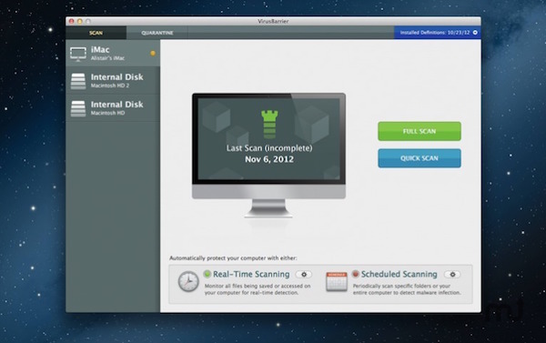 可随时在 VirusBarrier Express 或 VirusBarrier Plus 中运行手动扫描。 您应该在安装后立即运行手动扫描,确保机器上没有受感染的文件,并且在每次更新恶意软件定义后也应该重新扫描 Mac。【软件特点】