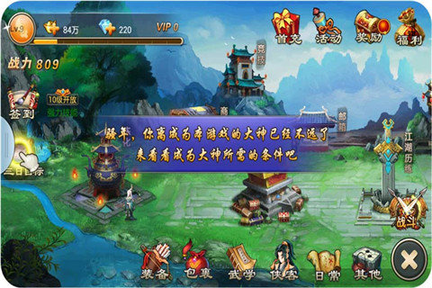 开挂江湖手游是一款画面非常精致的角色扮演类游戏,该游戏不仅拥有各种华丽的特效、场景等,还为玩家提供了多种职业的精美人设,让你可以根据自己的喜好进行选择,当然你还可以通过该游戏与各个城市的玩家成为好友,打造一个专属于你的江湖。